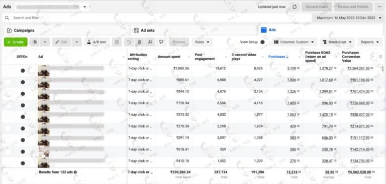 Purchase Conversion value of Rs.6562528, with 28.5X ROAS & Landed 13k customers
